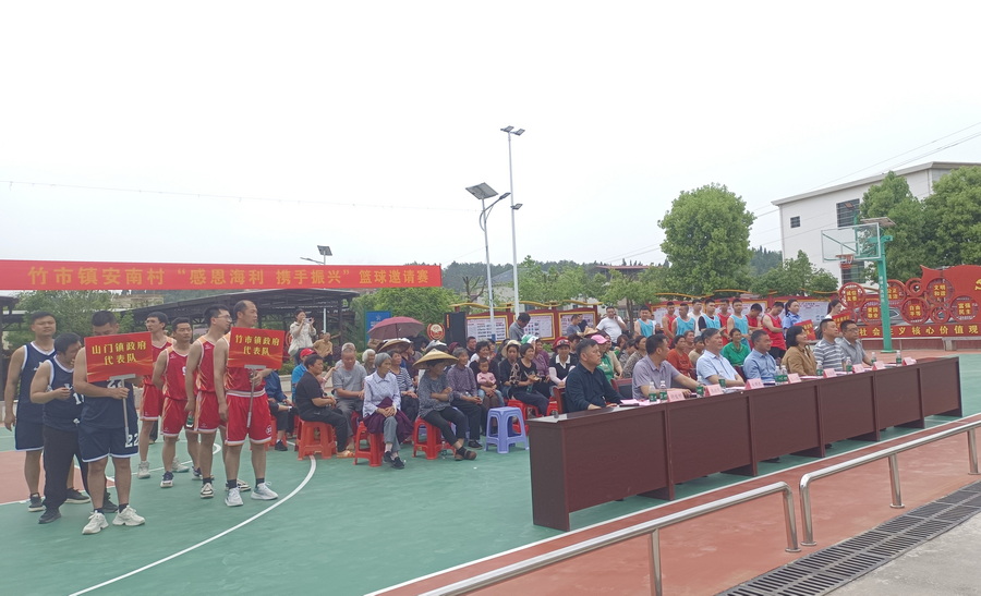会后,集团考核组一行出席了竹市镇安南村“感恩海利 携手振兴”篮球邀请赛开幕式。